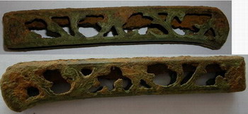 ce petit objet en métal cuivreux me laisse perplexe quant aux représentations suggérées par les trous et sur l'origine de cet objet.....peut-être un rébus ???