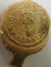 a tous me revoici pour un plomb trouver dans un labour du 41 il mesure 18 mm de large.il y a une fleure de lys surmontée d une couronne et les inscriptions (trange ou etrange ) je ne vois pas bien .si quelqu un a une idée , merci.