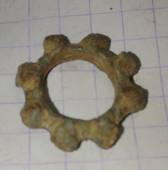 ce petit objet de 20mm de diamètre en métal proche du potin il me semble avec 8 'boules'. Je me demande si c'est une fusaïole ou non et si une datation est possible