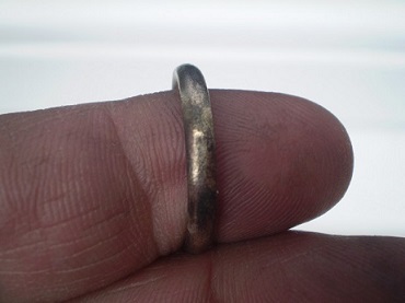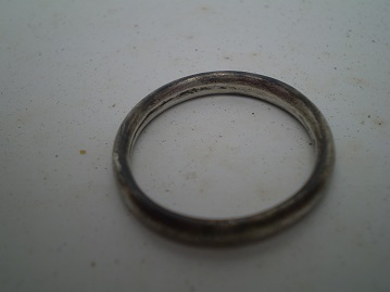 après quelques sorties sans succès méritant le forum ( même s'il y a des objets rigolos!!!) je vous poste cet anneau que je sais être en argent après nettoyage. Une sorte d'alliance, sans aucun poinçon, et qui semble avoir été façonnée artisanalement. Faut dire que je suis dans une zone très rurale . Dc je pense à une sorte d'alliance, du 'fait maison' comme on dit aujourd'hui abusivement. diametre 20 mm pour un poids de 4,5 grs. Ce que je trouve particulier et ce qui vous vaut ce post, ce sont les stries à l'intérieur. Qu'en pensez - vous ? Je livre une fois de plus un objet à vos luminescentes lumières. Datation possible??? a voir.