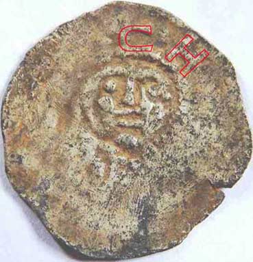Je me suis principalement axé sur les lettres des légendes 'CH' pour CHVONRADVS et 'IV(I)T' pour CIVITAS dont les emplacements correspondent exactement à ceux des dessins et autres exemplaires connus du denier bâlois..