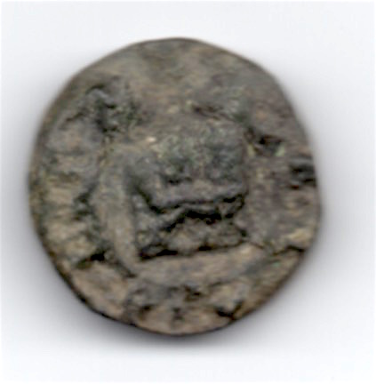 Il me semble distinguer un éléphant à droite sur une face,pour moi ce ne sont pas des inscriptions,des simples motifs,avec un peu d'imagination l'autre face pourrait être une porte de camp ou un châtel,Il a aussi fait une fibule que voici et un plomb qui me semblerai être une taxe sur les tissus,je suis en cours de déchiffrement des inscriptions.