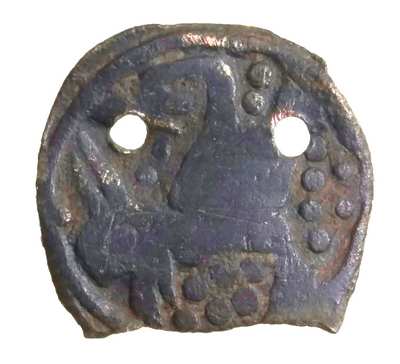Voilà un objet qui m'interpelle au début en sortant de terre je pensé à un petit billon et après nettoyage je vois bien que non mais ce motif me laisse sans voix et me dit 'qu'est ce donc ?'