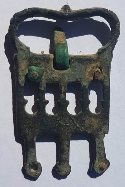 boucle militaire romaine à chape intégrée ajourée du IV / V ième siècle.
