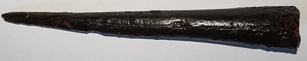 Et si c'était une pointe d'épieu ou mieux un talon de lance/javelot du 2nd Age du fer au gallo-romain pour la chasse au gibier ,mais aussi pour la guerre...'''La lance est une arme d'hast dotée d'un fer emmanché sur une hampe ou long bois et, pour certaines d'entre elles, d'un talon métallique qui sert en général à équilibrer l'arme tenue en main et à la planter dans le sol.WIK.....''