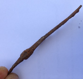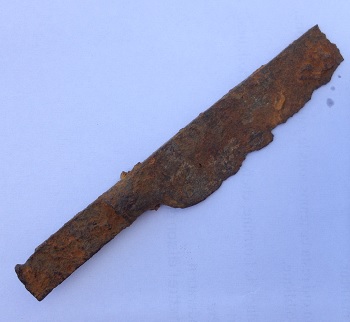 trouvé cet objet 7.5 cm de long par 13 mm au plus epais, fer...on dirait un reste de petit couteau mais bon....