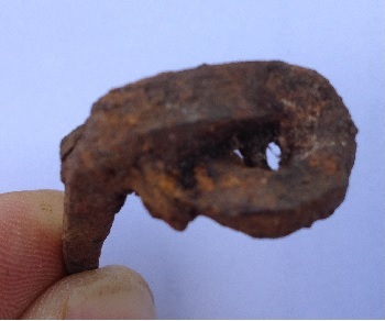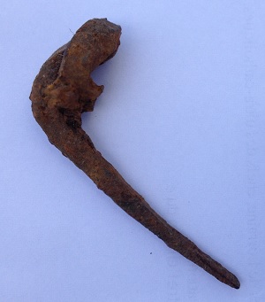 trouvé en savoie ce 'clou' rigolo 5.5 cm de long, t^te environ 2.5 cm en fer mais forme atypique, le fer a été refermé sur lui même ...ça parle à quelqu'un?