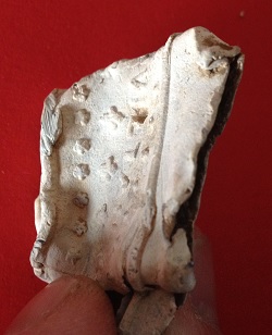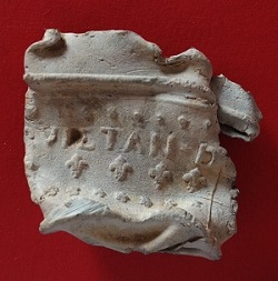 trouvé ce truc en plomb, cela m'a fait penser à une capsule de bouteille de vin mais c'est pas écrit dans le bon sens et c'est épais (donc lourd : 22 gr) . mesure environ 2.5X3 cm