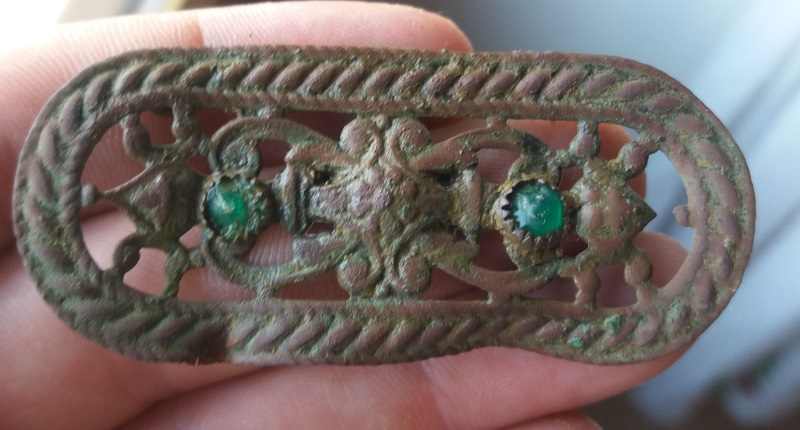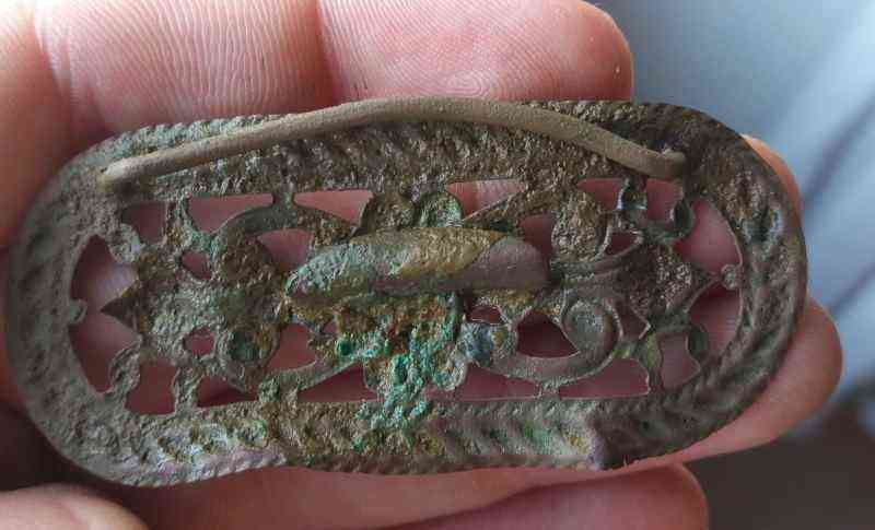 Je viens solliciter votre aide car j'ai trouvé cette belle broche hier dans un champs du Nord du Jura et j'ai quelques doute à son sujet. Dimensions : 6cm / 2.5cm
