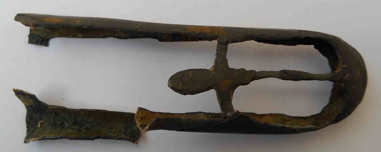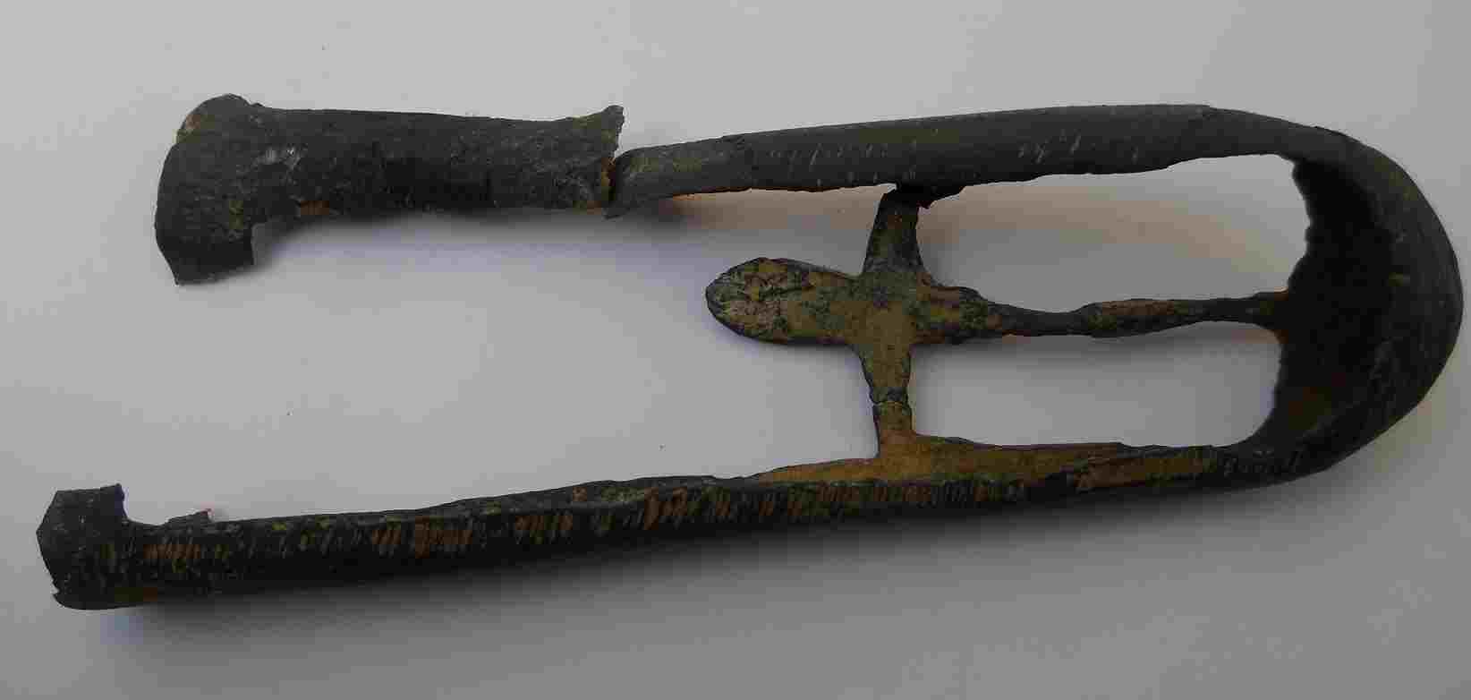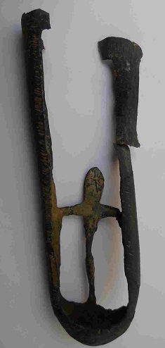 Je l'ai trouvé hier en forêt ce qui me paraît être une armature ou coque de fourreau d'arme blanche, qui devait maintenir un cuir ou bois