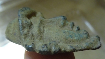 On voit bien le système d'attache à l'arrière, ce qui m'a fait penser à un applique de ceinture, mais à vrai dire je n'y connait pas grand chose en la matière... Alors je laisse les pros de l'identification d'artefacts me donner leur avis