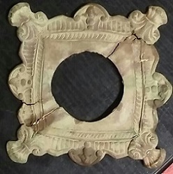 elle mesure 13 cm de chaque coté pour 230 grammes et le trou 5.5 cm.