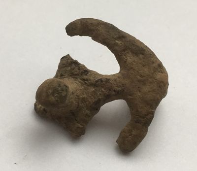 Il est certainement incomplet et présente deux petites excroissances de chaque côté, l'une présentant davantage des angles qu'une section circulaire.