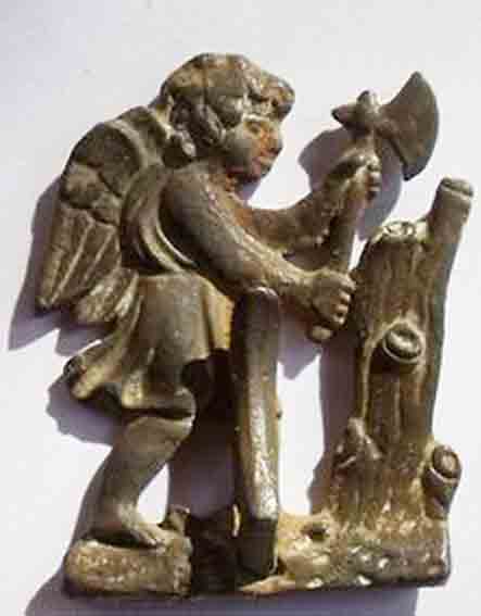 je vous présente ce qui est sans doute un crochet de tablier. Je suis toutefois interpellé par la symbolique. A votre avis, de quoi s'agit-il ? un ange maniant une hache...