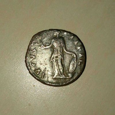 Description revers : Vénus drapée debout à gauche, tenant une victoriola de la main droite, appuyée de la main gauche sur un bouclier posé sur un casque .