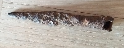 Merci pour ta réponse. Du coup je pense que c'est une pointe de flèche difficilement datable. Je peux t'envoyer des scans d'un bouquin sur les pointes de flèche mais il ne couvre que la période du Moyen-Âge. On y voit bien un type de pointes de flèche à douille, de profil pyramidal et de section plate comme la tienne, mais il se rencontrerait plutôt en Allemagne, Belgique et Pologne.