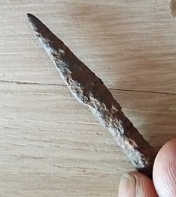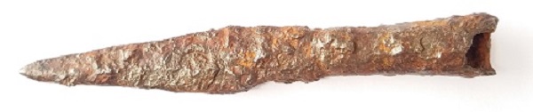 trouvé objet fer, que je pense être une pointe de fléche à douille (6 cm) j'ai regardé sur artefact pour voir mais pas trop trouvé la même du coup je prefere vous demander et , si vous confirmé, est il possible de la dater?