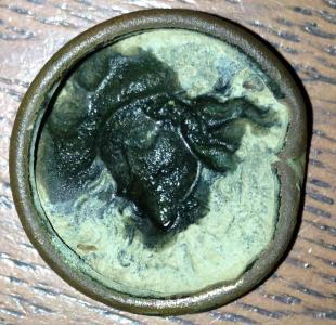Bonsoir a tous ! nouvelle trouvaille dans le nord de la France prés de Lille . C'est un bouton en cuivre de 28 mm de diamètre avec pour moi l'effigie de LOUIS XIII mes pas certain . si vous avez des petits indice sur ce bouton je suis preneur ! Merci d'avance .