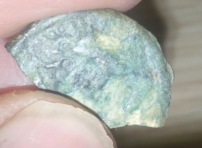 Petite détecte après le boulot, la chaleur devient dure à supporter, mais je décide d'aller faire un saut, pas grand-chose de sortie, mais ce bout de monnaie m'intrigue par sa matière, les forme que l'on peut voir, je sais pas si avec les photos vous pouvez me dire quelque chose