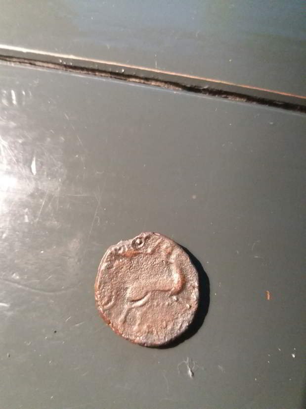 Ca me fait penser à une monnaie en bronze des Ambiens en RO ça me fait penser à un hippocampe donc sans certitude , vue l'usure importante je propose bronze aux hippocampes adossés des Ambiens