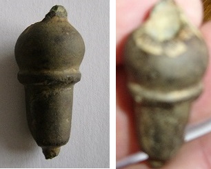 Selon moi, il s'agit d'un fragment de terminaison de poignée de mobilier gallo-romain.