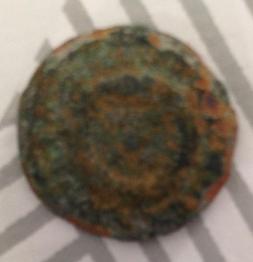 Bonsoir a tous . Monnaie romaine trouver cette après-midi dans le nord de la France . Diamètre 18 mm , matière bronze je n'ai pas le poids car pus de balance . (la pièce n'ai pas totalement nettoyer désolé) Merci d'avance