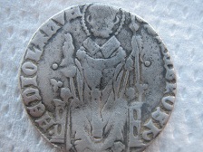 sur l'avers je vois un saint assis bénissant de la main droite.