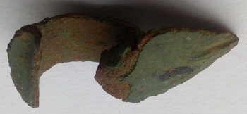 J'ai trouvé dans le Doubs ce qui me fait penser à une fibule cassée, on voit en R3 une cassure qui me fait penser à un reste d'attache.