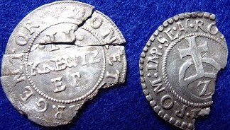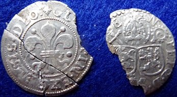 Voici 2 monnaies cassées (la 2eme c'est pas moi ) trouvées a 1 m de distance en foret