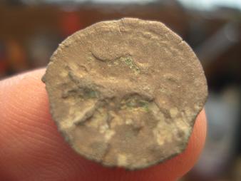 Le revers est plus énigmatique, j'y vois, tantôt un taureau vers la gauche , tantôt unes bestiole à quatre pattes (genre cheval) sur la droite...!?