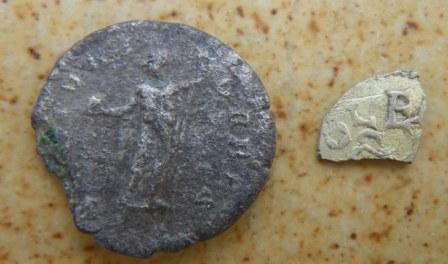 à noter que ce denier, sensé posséder 55% d'argent, sorti quasi en l'état, n'a eu juste qu'un passage sous l'eau et un coup de gomme. Il présente un aspect granuleux.