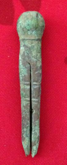 Bonjour a tous ! voici une accroche trouver hier dans le 59 . Matiere bronze , poids 18 g , hauteur 5,5 cm , largeur 1 cm . Merci d'avance ! david1982