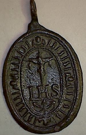 en R3 IHS monogramme du Christ et symbole des Jésuites surmonté d'une croix ,en dessous clous de crucifixion
