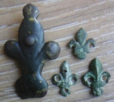 Découverte par mon compagnon de misère, grosse applique fleur de lys posée à côté de 3 paillettes de tailles standard.