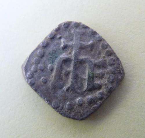 J'ai trouvé un autre denier du trésor de Nice-Cimiez qui présente une face proche ( sans être identique) à ton denier .(Belfort 3473 ). Il s'agit de la face au E ou M crucigère . On peut même se demander si ce que l'on appelle denier au' E crucigère' ne pourrait pas se nommer au 'M crucigère'