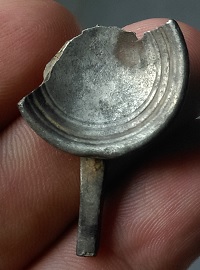 je vous soumets cet objet mystérieux, il est argent et a la forme d'une cuillère ronde cassée.