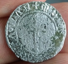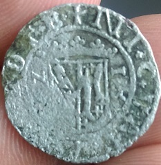 Toujours dans les objets de ma sortie dans le 76, une petite monnaie qui m'a l'air de venir de Lorraine.Elle est en billon et fait 19mm de diamètre.