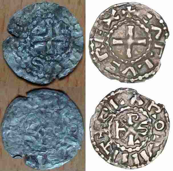 Suite à son dépliage (thread Espace Chercheurs), je vous présente cette monnaie miraculée. Je pense à un denier de Charlemagne, mais pas tout à fait sûr.