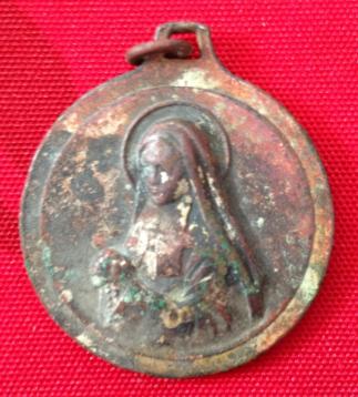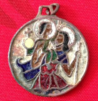 Bonjour a tous ! je vous soumet cette médaille trouver hier dans le 59 . Il s'agit de la vierge et de saint Christophe au revers . Diamètre 3 cm elle et en cuivre et le poids et de 12 g. d'avance david1982