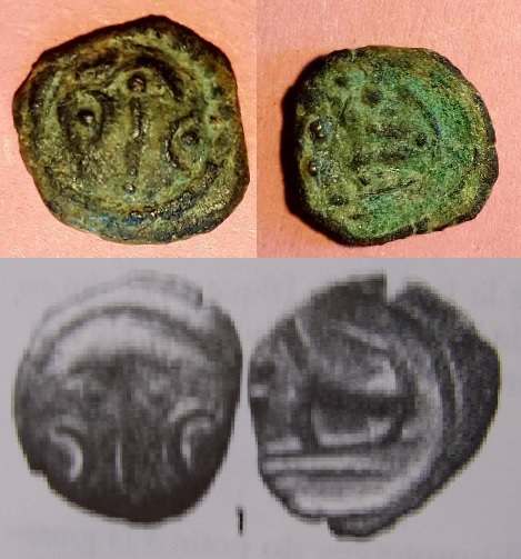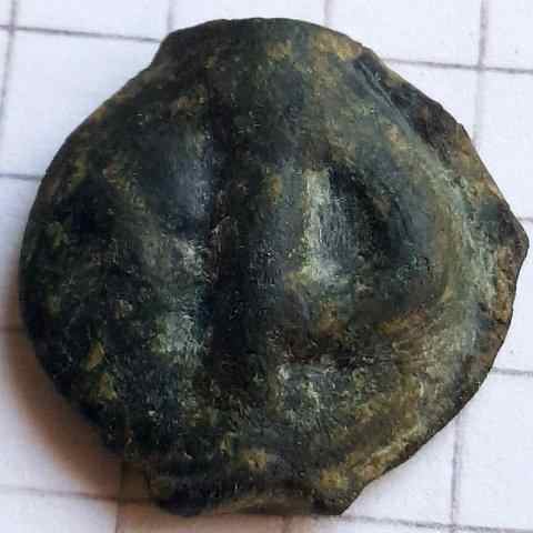 En visuel, elle est belle, patinée sur la face, cela fait penser à un visage mais on peut y voir le mùt d'un bateau, ou un palmier avec son tronc et deux astres sur les cÎtés, je n'ai jamais rien vu de tel. J'ai trouvé dans cette zone des monnaies assez frustres aussi de type bronzes salyens. Voilà à voir