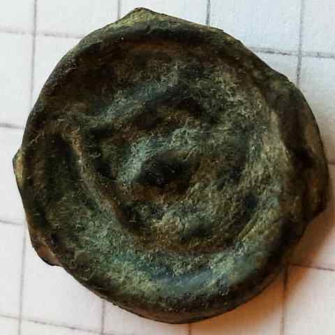 entre 15 et 13 mm pour les dimensions, 1,7 grs une monnaie en bronze dans un terrain ou je trouve souvent des bronzes au taureaux et lĂ je cale sincĂšrement, je ne sais pas ce que c'est.