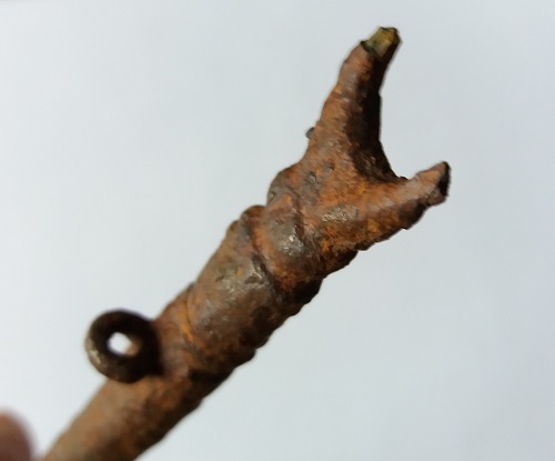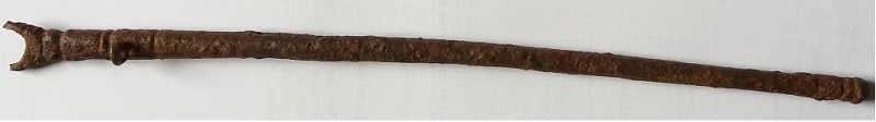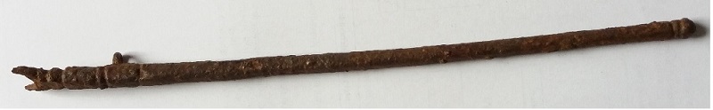 trouvé cette tige en fer ouvragée, 23 cm de long 15 mm partie la plus large en haut, diam moyen de la tige 6 mm