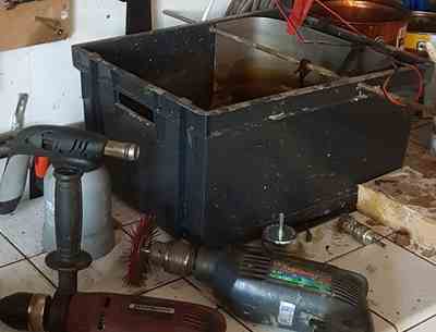 Pour les cloches en fer , je décape un peu plus fort pour enlever la couche noire qui se dépose après l'électrolyse et pour retrouver les restes de cuivre ., Puis je passe au chalumeau pour enlever toute trace d'humidité .