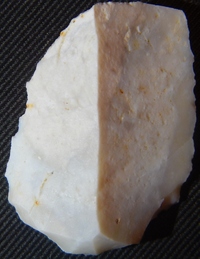 Je vous présente un silex taillé trouvé dans le sud du Tarn dont j'aimerai définir la fonction. J'y verrai bien une pointe levallois réemployée en grattoir ou racloir (au niveau du talon).Qu'en pensez vous?