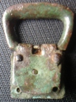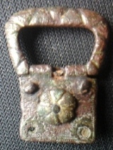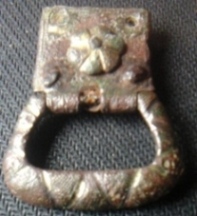 Très jolie trouvaille cette boucle avec sa chape. Il manque l'ardillon,seul l'axe porte ardillon est visible sur tes photos. Pas non plus d'encoche d'ardillon visible au milieu de la boucle elle même.