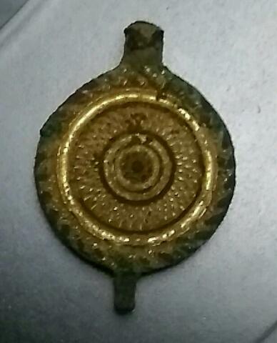 P'tite sortie un peu pauvre en découvertes aujourd'hui, deux petits morceaux de fibule et cette objet que je ne sais pas identifier ! Diamètre 1,5 cm.