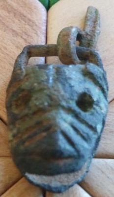 Trouvé cet été dans la Manche cette boucle avec quatre têtes de serpents (que je pense être bronze mais peut-être une forte proportion de cuivre).
