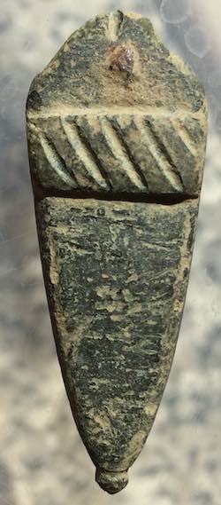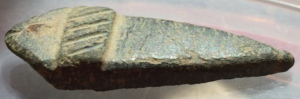 Voici un objet trouvé ce jour que j'aimerais identifier. Je le vois assez médiéval d'apès son style, mais ce n'est pas très précis et je peux me tromper.