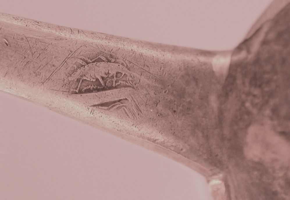 Le poinçon ''bestiole'' serait un poinçon de ''recense'' dit aussi poinçon de bigorne (ou contremarque). On voit bien en R0 les pattes d'un autre insecte sous le zig-zag...