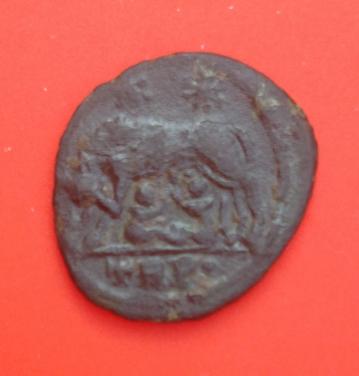 Slt à toi il me semble monnaie de Constantinople La Louve à gauche allaitant Remus et Romulus ; au-dessus, les deux étoiles des Dioscures